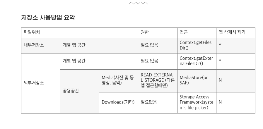 안드로이드의 저장소는 내부 저장소와 외부 저장소로 나뉩니다.