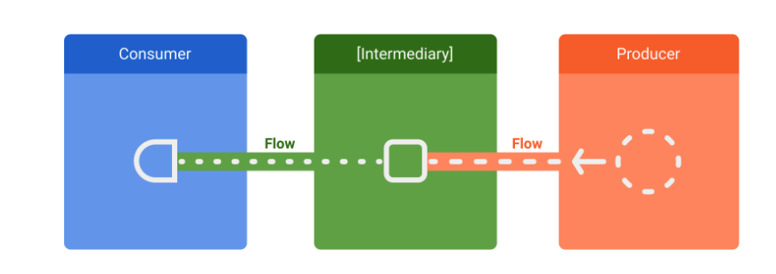 Coroutine Flow를 이용해서 연속적인 데이터 스트림을 구현하기 위해서는 Producer(생산자), Intermediary(중간 연산자), Consumer(소비자) 3가지가 필요합니다.